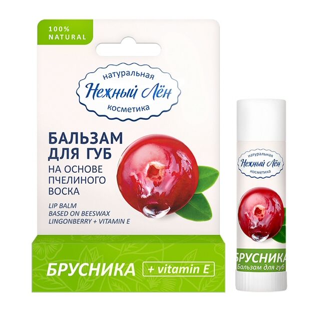 Состав: пчелиный воск, масло какао, экстракт брусники, мёд, льняное масло, миндальное масло, масло шалфея, витамин Е.