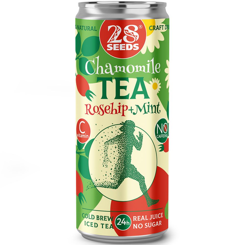 Состав: Ромашковый чай 24 часа холодного заваривания (вода подготовленная, цветки ромашки сушеные), яблочный сок, сок шиповника, экстракт мяты, витамин С. Изготовлен из концентрированных соков.