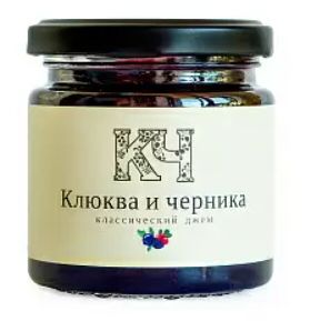 Состав: цельные ягоды клюквы и черники, сахар, загуститель фруктовый пектин, лимонная кислота.