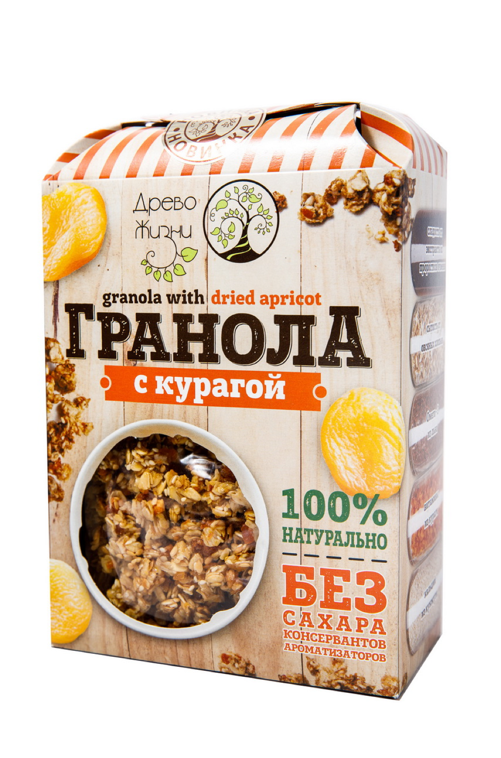 Состав: овсяные хлопья, экстракт из проростков ячменя, курага, семена льна, семена кунжута, кокосовое масло, вода