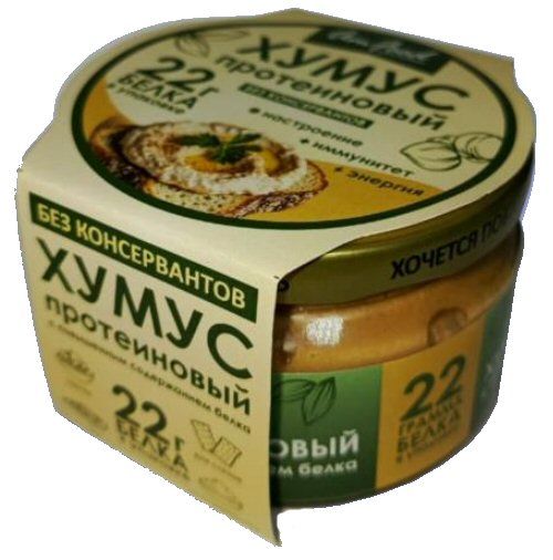 Состав: нут, вода питьевая, кунжутная паста (тахина), смесь растительных белков (соевый, гороховый, рисовый), масло подсолнечное рафинированное дезодорированное, масло оливковое рафинированное, соль, регулятор кислотности лимонная кислота, чеснок сушёный, перец красный молотый