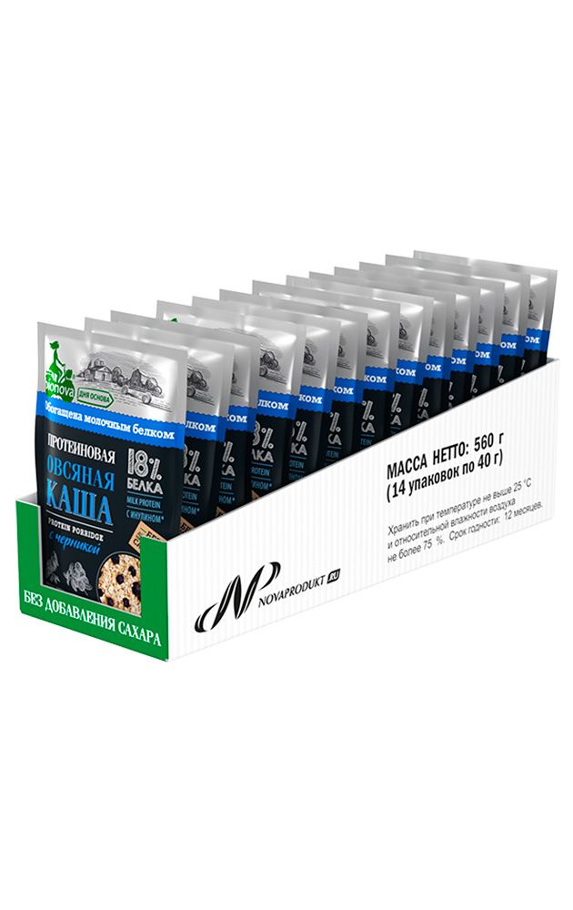 Состав: хлопья овсяные, молочный белок, отруби овсяные, нектар агавы порошкообразный, пищевое волокно из цикория – инулин Fibruline® (Бельгия), ягоды черники сублимационной сушки, соль, натуральный ароматизатор