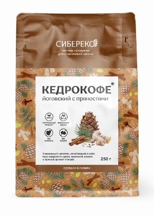 Состав: кедровый орех дроблёный, заменитель сливок (кукурузная патока, кокосовое масло, молочный белок), корица молотая, имбирь молотый, кардамон молотый, гвоздика молотая, куркума молотая