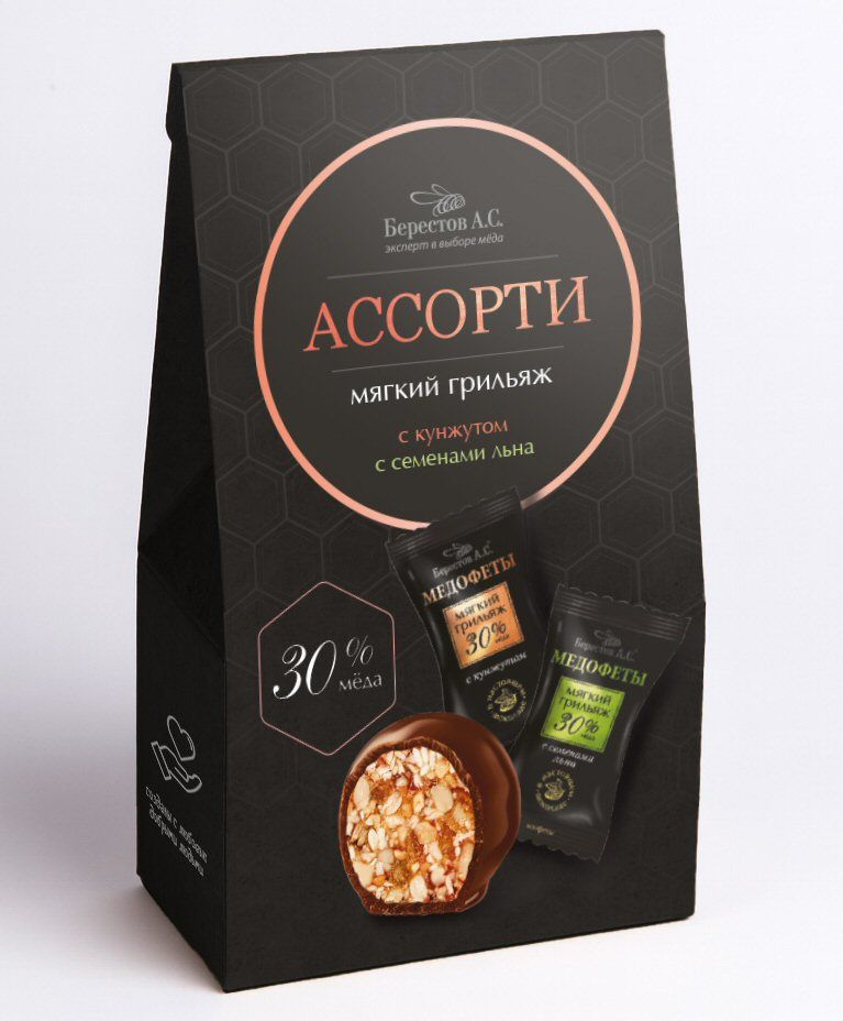 Состав: Мягкий грильяж с кунжутом, с семенами льна