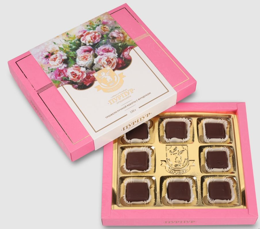 Состав: Шоколад тёмный (какао тёртое, сахар, масло какао, эмульгатор: подсолнечный лецитин, ваниль натуральная), сахар,дроблёный фундук, масло какао, сухое цельное молоко, какао тёртое, сухая молочная сыворотка, молочный жир, жир растительный, какао-порошок, эмул