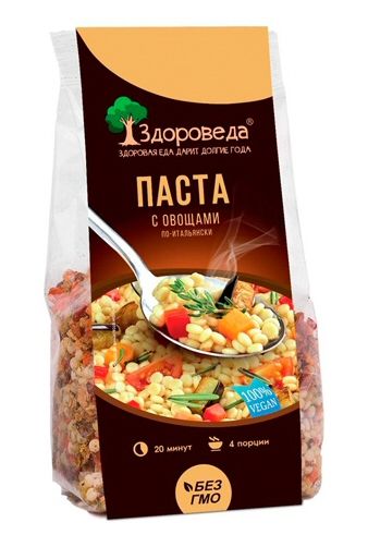 Состав: Макароны птитим, морковь сушёная, паприка сушёная, баклажан сушёный, томаты сушёные, перец чёрный молотый, асафетида, базилик, тимьян, орегано, розмарин