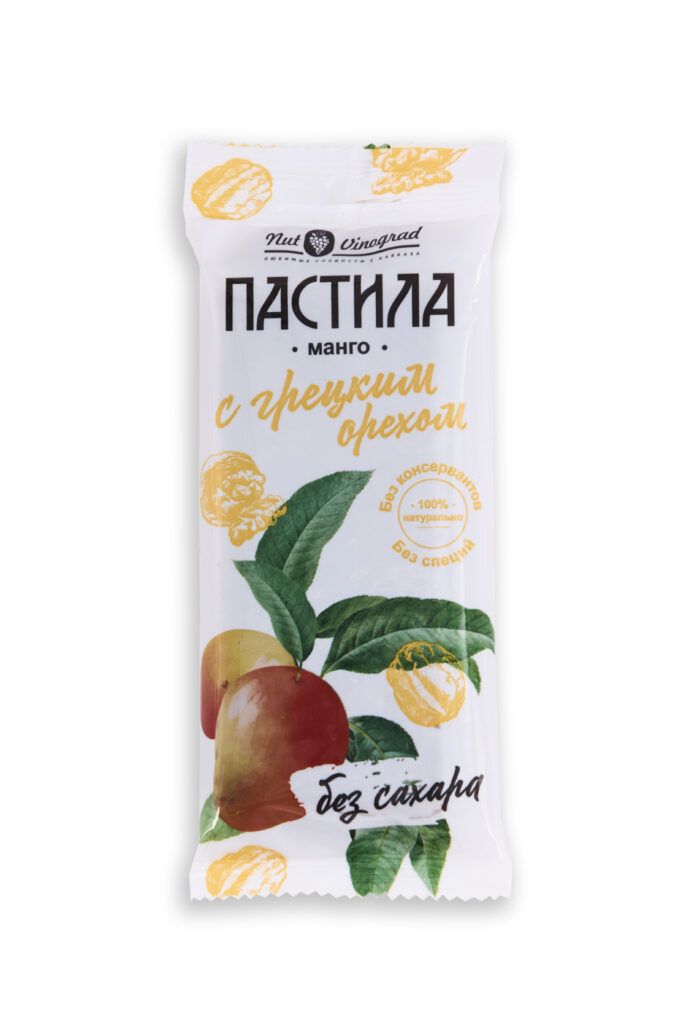 Состав: манговое пюре, яблочное пюре, грецкий орех.