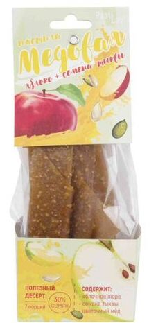 Состав: Яблочное пюре, сок яблочный концентрированный, семена тыквы, цветочный мед, лимонная кислота, натуральный краситель