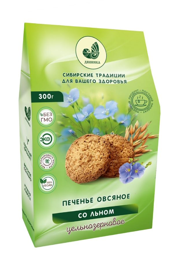 Состав: мука пшеничная обойная, хлопья овсяные, отруби овсяные, сахар, масло подсолнечное, семя льна, изюм, сухое молоко,яичный порошок, соль пищевая, корица, ванилин, сода пищевая (разрыхлитель), лимонная кислота
