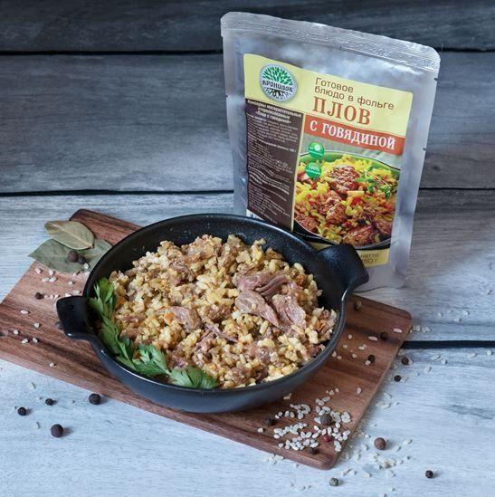 Состав: Говядина, крупа рисовая, вода питьевая, лук репчатый сушеный, масло растительное, морковь свежая, соль поваренная пищевая, специи, кумин