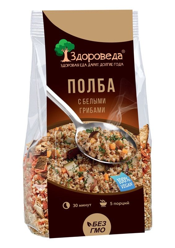 Состав: Крупа полбы дробленая, морковь сушеная, грибы белые, перец черный молотый, асафетида, кумин, кориандр, розмарин.