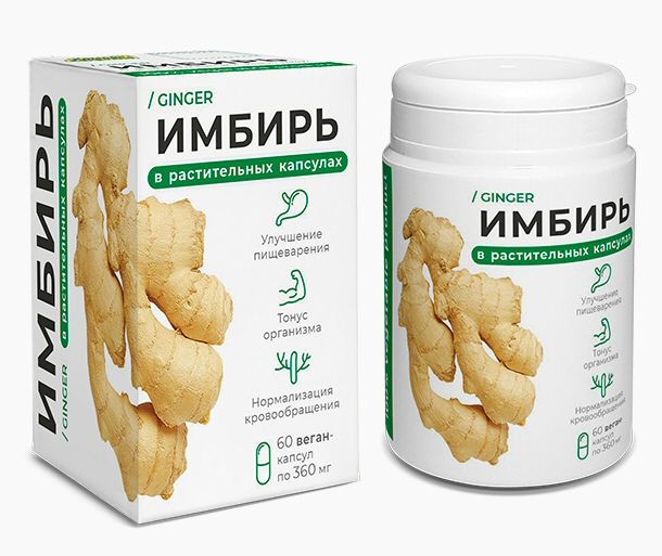 имбирь молотый, оболочка капсул: гипромеллоза (носитель).