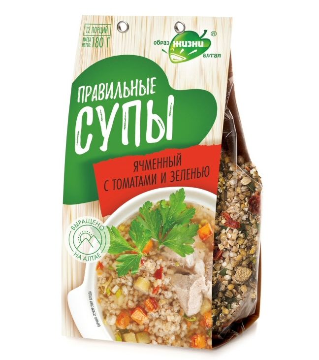 Состав: ячмень резаный, морковь сушеная, томаты вяленые, лук зеленый сушеный, чеснок сушеный, укроп сушеный, петрушка сушеная