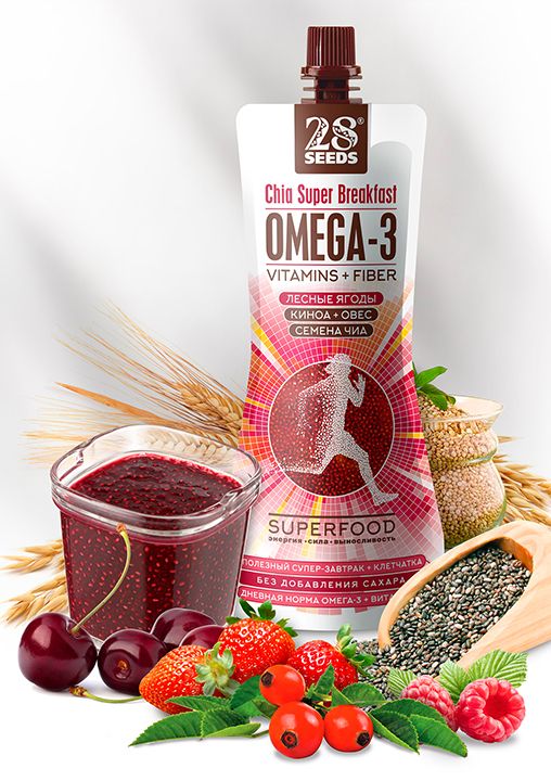 Состав: вода, малиновое пюре, клубничное пюре, вишневое пюре, яблочный сок, семена Чиа, сок шиповника, киноа хлопья, овсяные хлопья, натуральные подсластители: эритрит, экстракт стевии, регулятор кислотности – лимонная кислота, витаминный премикс EM28304