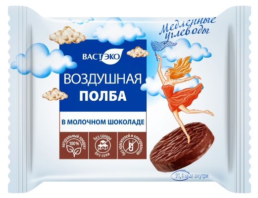 Состав: Воздушное зерно полбы, шоколад молочный без сахара. Содержит подсластители.