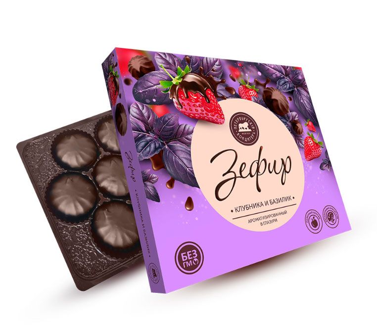 Состав: сахар, глазурь (сахар, заменитель масла какао нетемперируемый лауринового типа, какао-порошок, эмульгатор: лецитин, ароматизаторы: “Шоколад”, “Ваниль”), патока, пюре яблочное (яблоки, консервант E220), белок яичный, желирующий агент: пектин, регулятор кислотности: кислота молочная, влагоудерживающий агент: лактат натрия, ароматизаторы: “Клубника”, “Базилик”, краситель: кармин